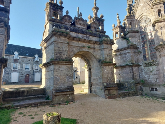 La porte monumentale de Saint-Thégonnec constitue à la fois un seuil symbolique, un élément architectural majeur et une affirmation du prestige paroissial. Par sa richesse décorative et sa fonction liturgique, elle illustre pleinement la vitalité religieuse et artistique de la Bretagne du XVIe siècle.