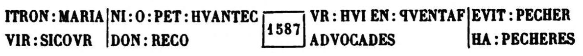 "Dame Marie de Vrai-Secours De tout cœur à vous nous avons recours. Vous êtes première avocate Du pécheur et de la pécheresse" |